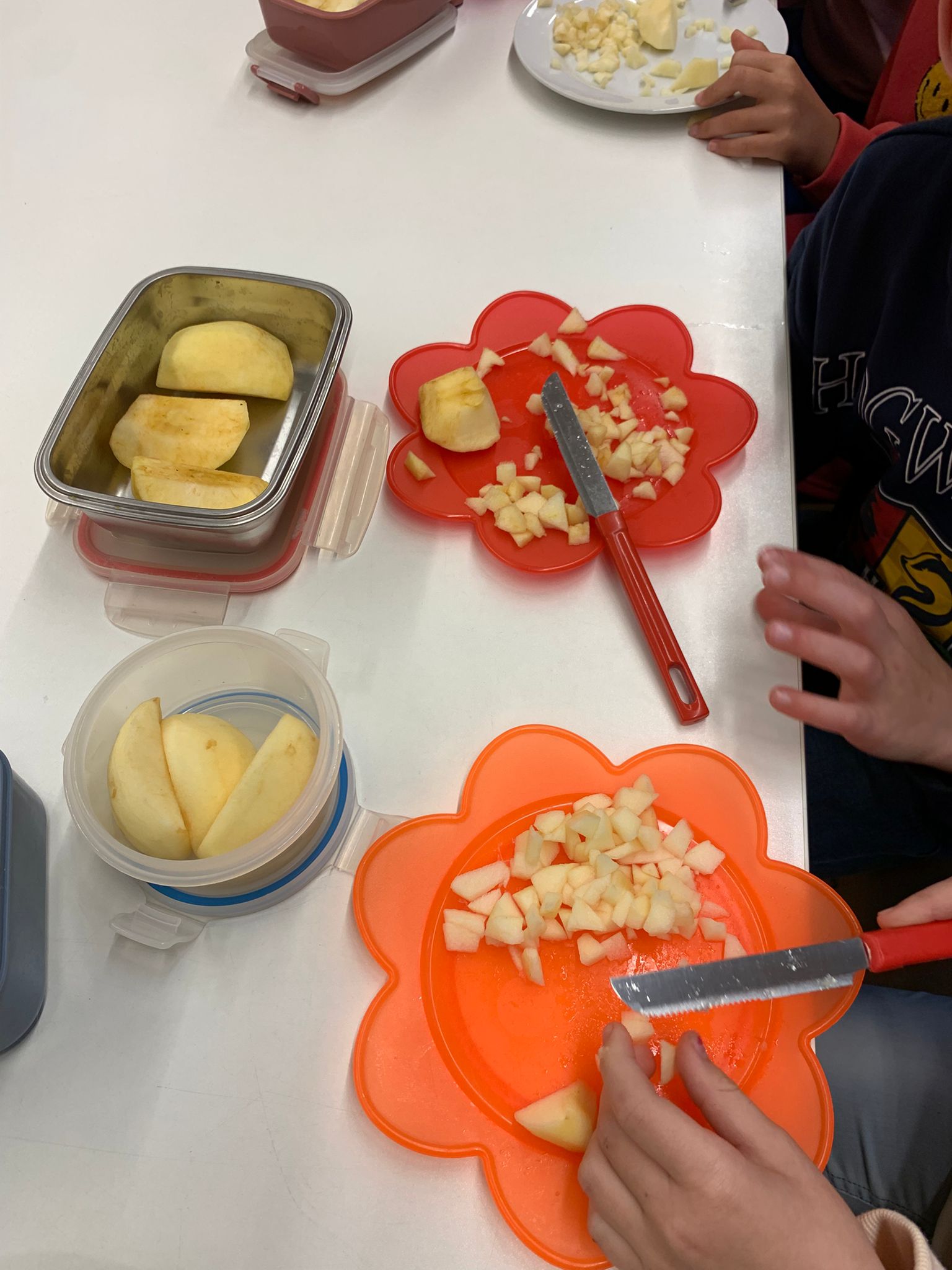 Wir haben leckeres Apfelmus gekocht und gegessen.